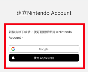 Q:【Nintendo Account】欲建立Nintendo Account。