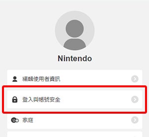 1. 使用電腦或智慧型手機,登入Nintendo Account並選擇「登入與帳號安全」