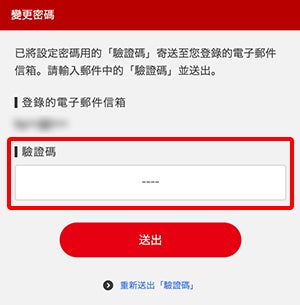 c. 輸入記載在電子郵件內的驗證碼並選擇「送出」