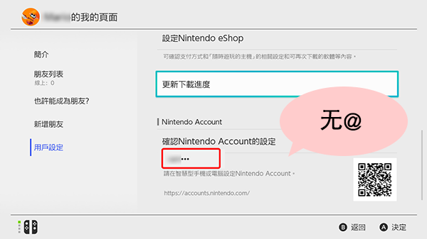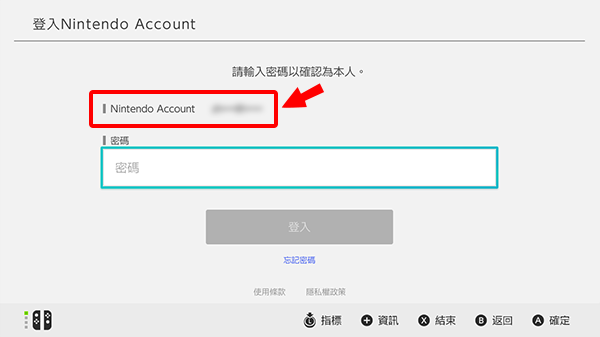 在登入畫面裡會顯示Nintendo Account,即使不打開我的頁面,也能夠在畫面確認。