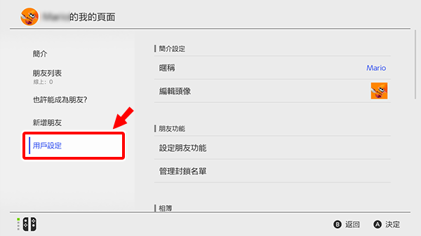 可在各使用者的「我的頁面」確認與相關使用者連動的Nintendo Account。