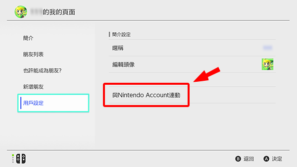 選擇「與Nintendo Account連動」,進入連動畫面。