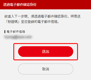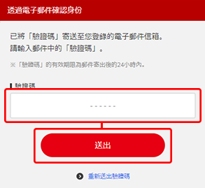 6. 輸入已收到的電郵中所列的「認證碼」並選擇「送出」