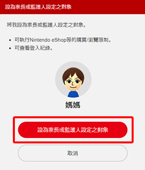 ※兒童帳號和未滿18歲的Nintendo Account均不可以成為管理者