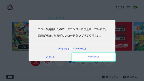 2. 在表示「因發生錯誤,下載已中斷」的畫面選擇「繼續」。