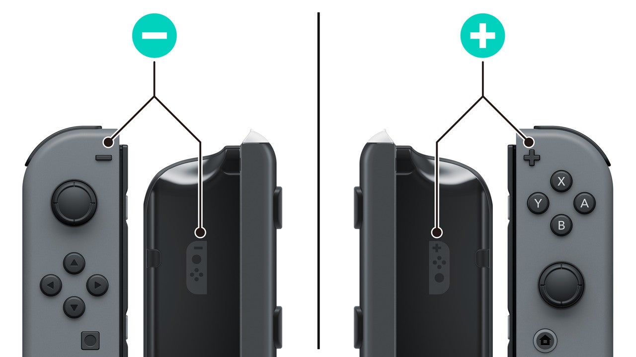 ※Joy-Con擴張電池和Joy-Con一樣分「左右」兩邊。+ 標記為右,- 標記為左。
